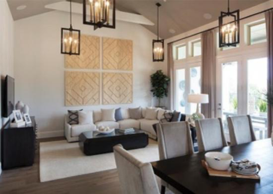 室内装璜设计选择:双入口门、庭院壁炉、第二间主人套房 、带香料厨房和水槽的厨房岛、大房间和主人套房代表尊贵的天花板横梁、第四卫生间的淋浴、主要生活区的木地板、商用电器、石英台面 和双面壁炉。